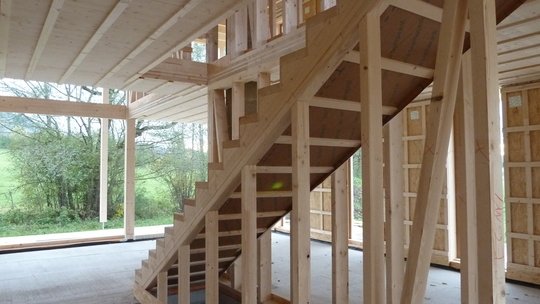 "Stefan hat bei der Produktion der Wandelemente, beim Dachstuhl und bei der Fassade mithelfen können und war sehr beeindruckt von dem faszinierenden Handwerk des Zimmerers und dem Werkstoff Holz. Unser Credo, flexibel- und lösungsorientiert bleiben zu können und unser persönliches Gefühl, dass Hausbauen etwas ganz Besonderes und Großartiges im Leben ist, stimmte auf harmonische Weise mit dem professionelln Auftreten von Zenz Holzbau überein. An dieser Stelle einen herzlichen Dank an die nette und immer positive Zusammenarbeit mit den Zimmerern, die auch einmal einen Schmäh verstehen!" Caroline Schöndorfer